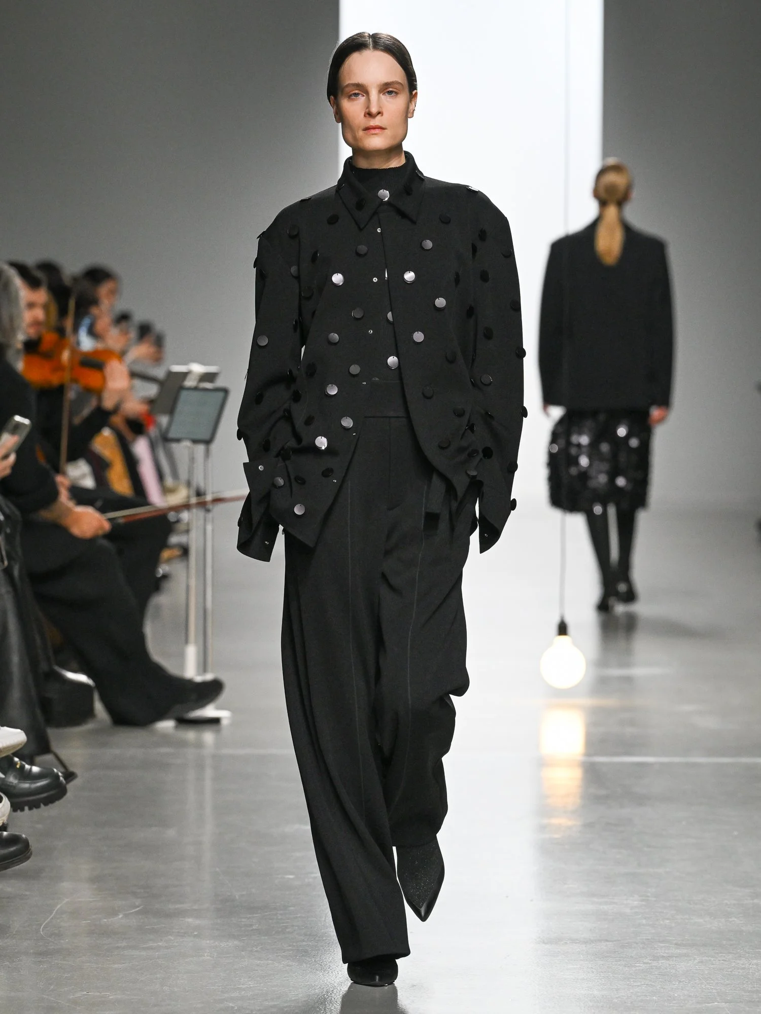 But before we get into the technicalities of the wonderful textiles, let me tell you a little bit about the feel of the show. The show starts off with a string quartet and experimental sounds were being played on violins. Initially it sounded like insects, but then it started to get a little creepy feeling. By the time the vocals came in I was properly a little freaked out. It sounded like a soundtrack to a horror movie. It was extremely eerie and intense. The vocals were more intense as a show went on and it really begged the question, what am I missing here? The clothing itself doesn't seem spooky or horror themed ...what will I see upon a closer look?